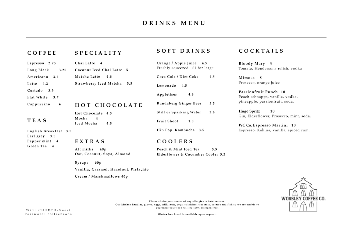Worsley Coffee Co Menu