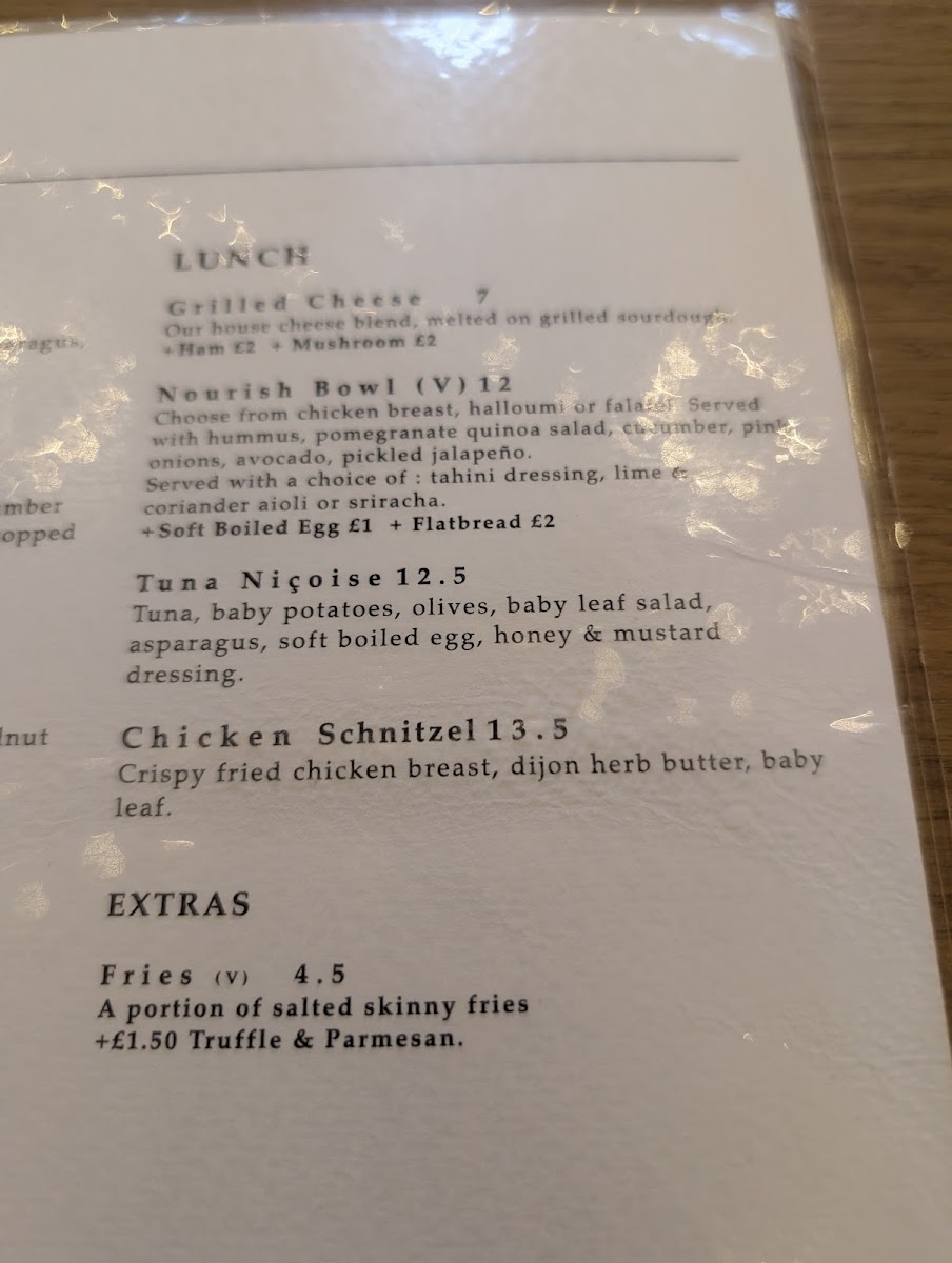 Lunch transitions seamlessly with highlights like the Nourish Bowl, where fresh choices like chicken, halloumi, or falafel are paired with vibrant salads and flavorful dressings for £12.00. For a simple yet satisfying option, indulge in the Grilled Cheese on sourdough for £7.00, perfectly melted and unpretentious.