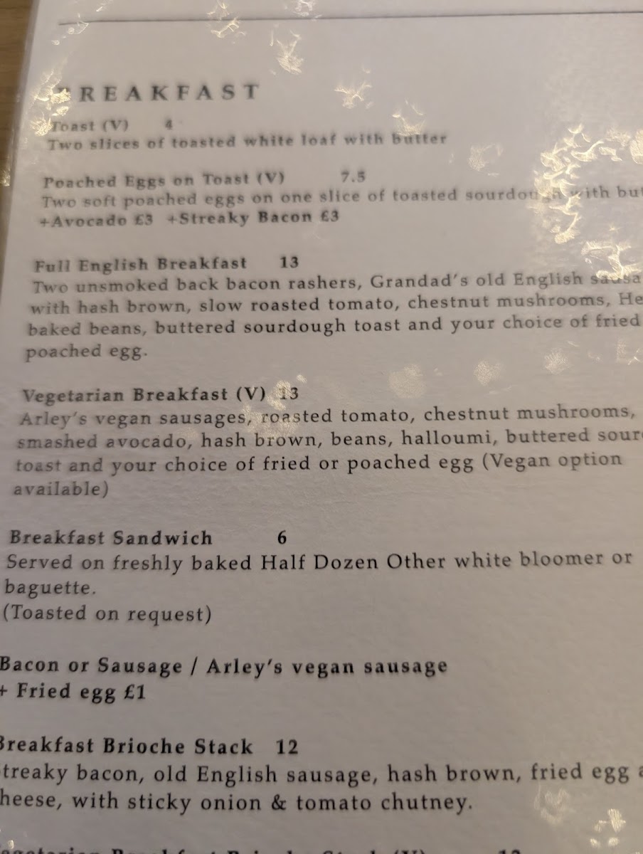 Arley's vegan sausages, roasted tomato, chestnut mushrooms, smashed avocado, hash brown, beans, halloumi, buttered sourdough toast and your choice of fried or poached egg (Vegan option available)
